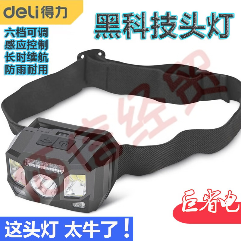 得力(deli)感應式頭燈強光充電超亮遠射可變焦頭戴式夜釣燈持久續(xù)航LED戶外家用迷你便攜小礦燈 感應頭戴燈 DL5415 自營