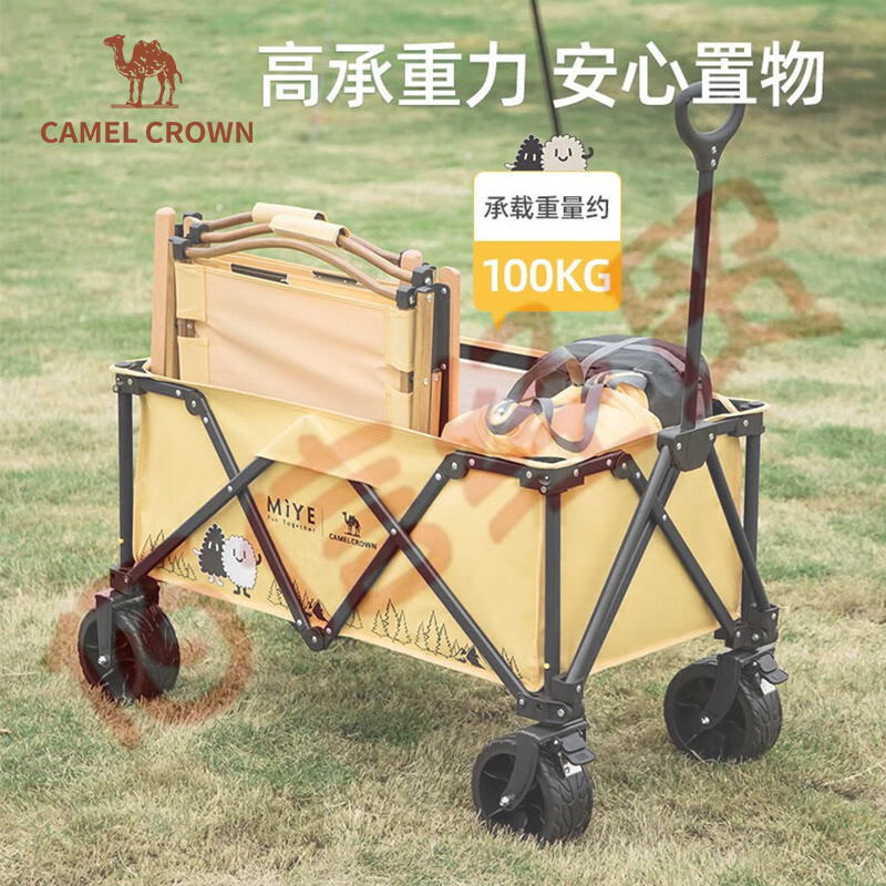 駱駝CAMELCROWN【小芒聯(lián)名】戶外露營便攜營地車野餐推車郊游手拖拉車聚攏型 173BAKP076,營地車,芒果黃 自營