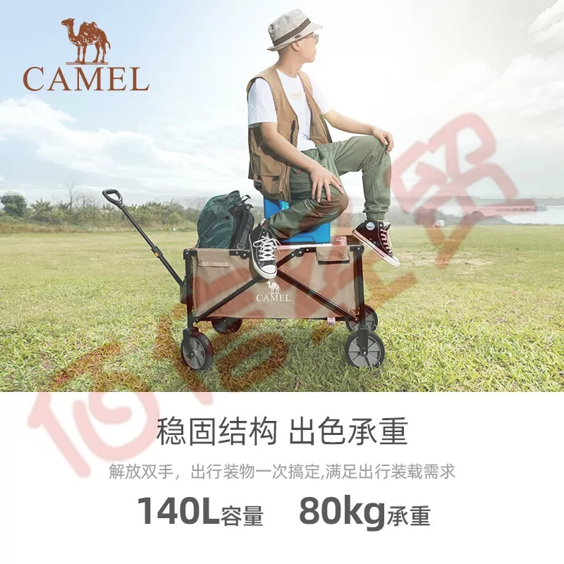 駱駝CAMELCROWN 戶外露營野餐車營地車便攜折疊推車郊游購物拖車擺攤手拉車 3036,米白/駝色(帶剎車-160L) 自營