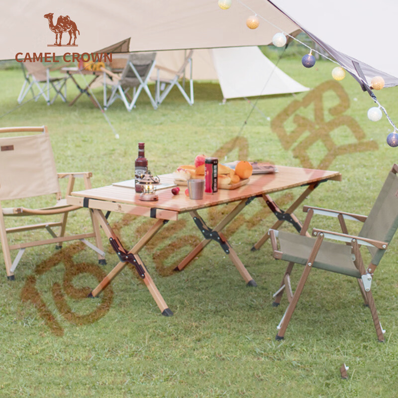 駱駝CAMELCROWN戶外露營木質(zhì)蛋卷桌庭院燒烤野營野餐櫸木桌子便攜折疊桌椅套餐 A2S31A102,原木色(大號(hào)) 自營