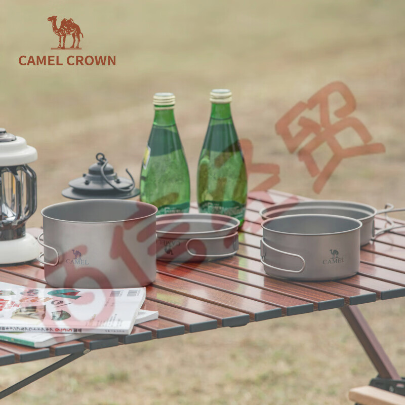 駱駝CAMELCROWN戶外精致露營餐具野餐燒烤便攜不銹鋼野營裝備純鈦多功能刀叉套裝 1152263002,小套鍋 自營