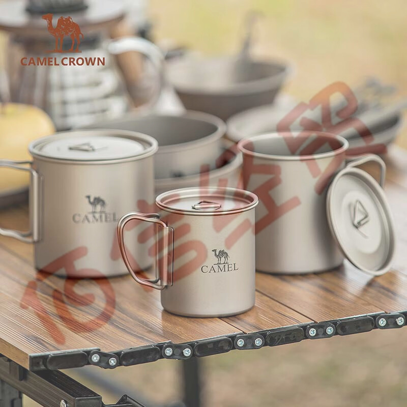 駱駝CAMELCROWN戶外精致露營餐具野餐燒烤便攜不銹鋼野營裝備純鈦多功能刀叉套裝 1152263009,大號杯,650ML 自營