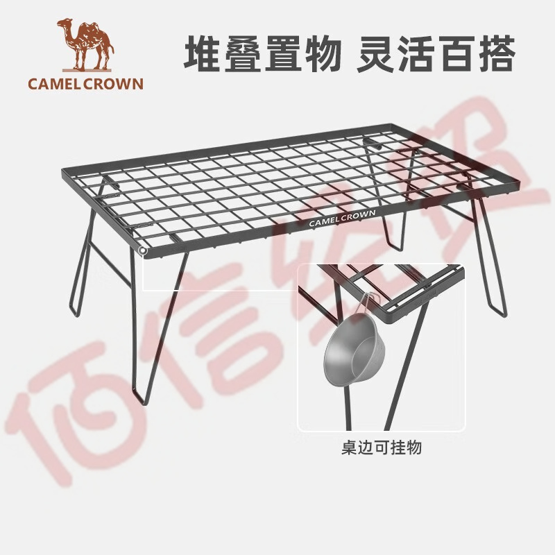 駱駝CAMELCROWN戶外露營桌子野營休閑折疊網(wǎng)桌便捷野餐桌公園野炊裝備用品置物架 1J722C7655,黑色 自營
