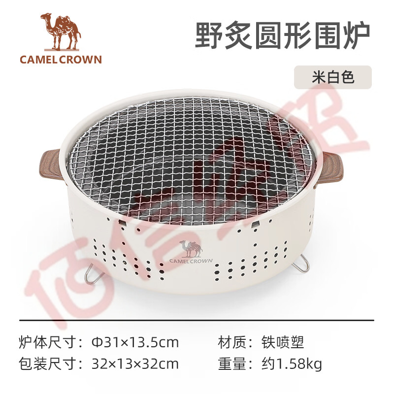 駱駝CAMELCROWN野炊燒烤爐家用烤肉爐室內(nèi)無煙燒烤架戶外燒烤圍爐煮茶碳烤爐 173CJ18021,米白色,預(yù)售 自營