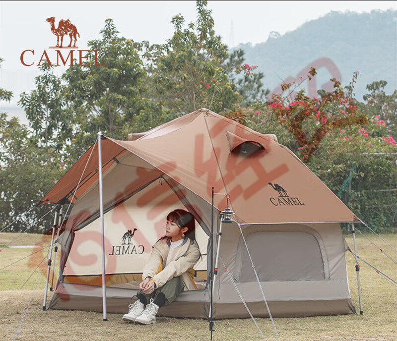 駱駝(CAMEL)戶外精致露營蘑菇屋帳篷便攜折疊野營加厚野餐公園露營自動帳篷 1142253030,淺摩卡 自營
