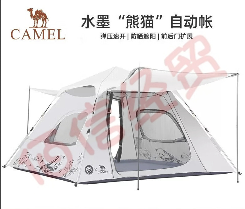 駱駝(CAMEL)[熊貓]戶外帳篷便攜式全自動(dòng)露營野餐野外防雨防曬速開雙門天幕帳 米白色【UPF50+涂銀】雙門彈壓 自營