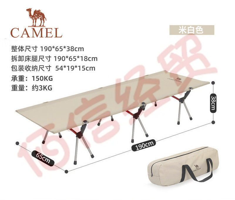 駱駝(CAMEL)戶外精致露營折疊床輕量便攜車載露營床輕便鋁合金單人床 1142253038,米白 自營