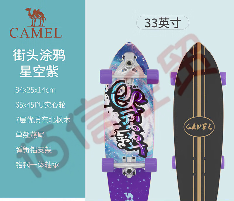駱駝(CAMEL)滑板陸地沖浪板初學(xué)者滑雪練習(xí)板免蹬地陸沖路沖板 I047,街頭涂鴉/星空紫(33寸) 自營