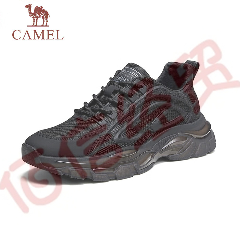 駱駝(CAMEL)運(yùn)動鞋男2023透氣輕盈緩震軟彈厚底休閑男士跑步鞋 P13A070034,黑色 38 自營