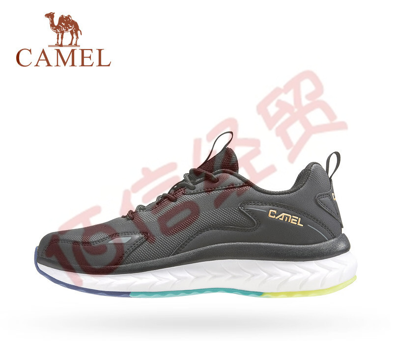 駱駝(CAMEL) 運(yùn)動休閑男鞋皮面男款跑步鞋 A132304845,黑色,男 40 自營