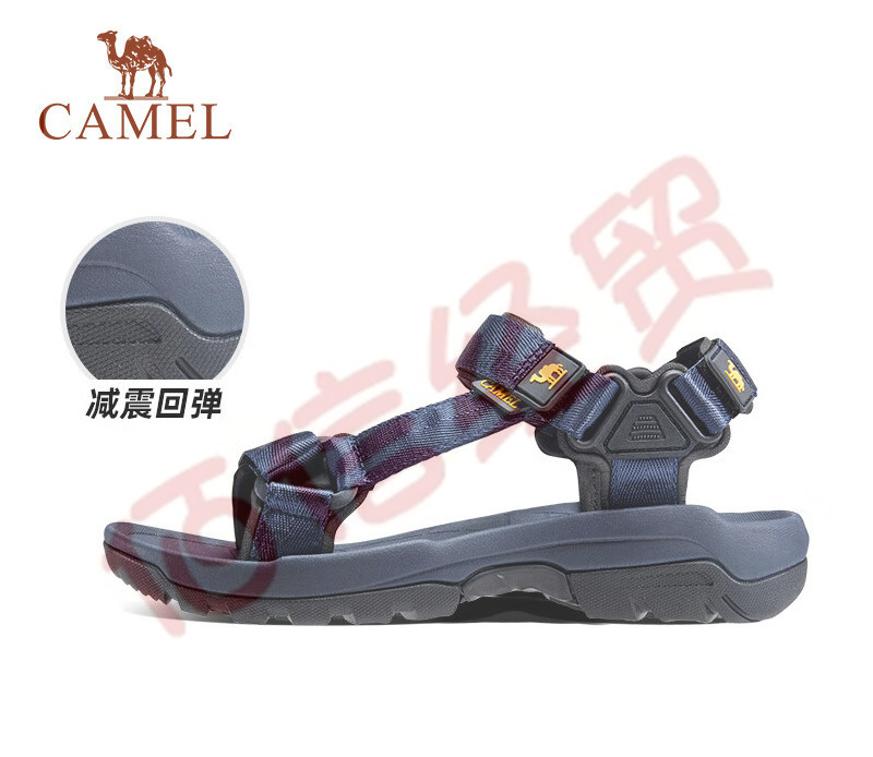 駱駝(CAMEL)男鞋款舒適輕便魔術(shù)貼休閑涼鞋防滑耐磨涉水沙灘鞋 FOS2220016,深藍(lán),男 41 自營