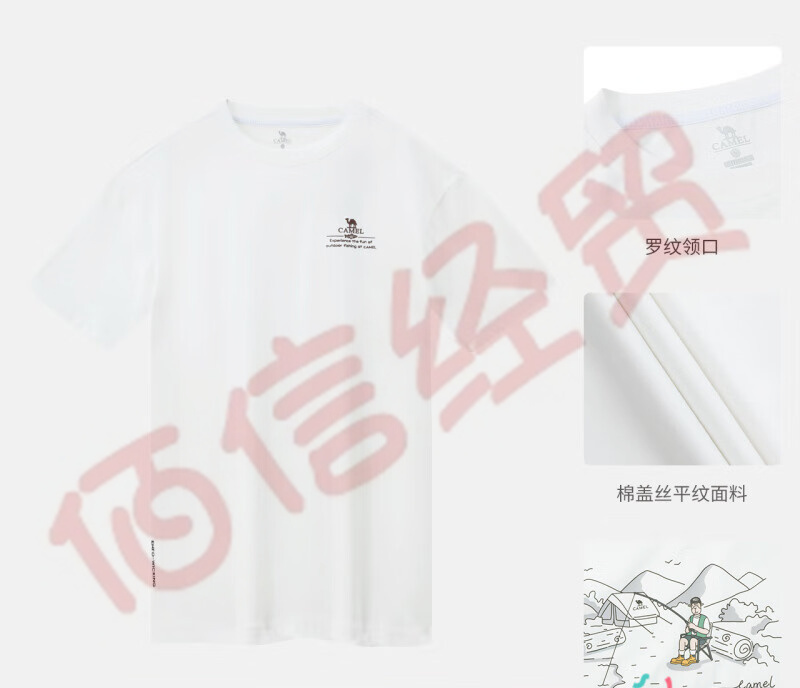 駱駝(CAMEL)【速干防蚊T】戶外男短袖圓領功能T恤2023春夏季露營運動上衣 A13BA6K070,無際白,男 S 自營
