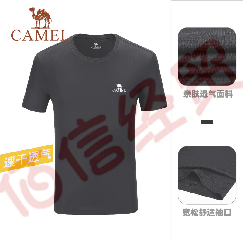 駱駝戶外健身速干T恤男士2023夏季吸汗透氣百搭跑步圓領短袖 J13BA40024,幻影黑,男 XXL