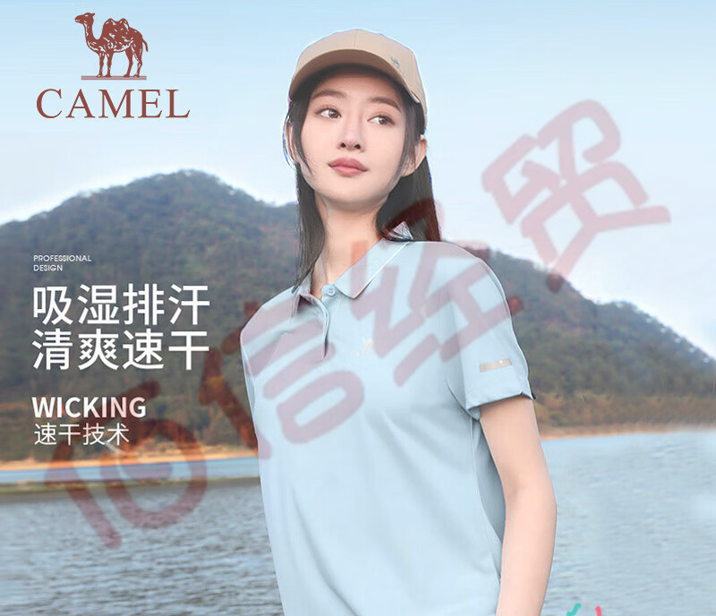 駱駝(CAMEL)速干短袖T恤POLO衫男女情侶款2023春夏季防曬運(yùn)動(dòng)速干衣 A23BAVV047,純凈藍(lán),女 XL 自營