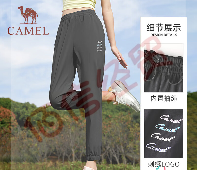 駱駝(CAMEL)速干運(yùn)動褲男2023春夏透氣梭織束腳休閑褲子女 J23BA66009,幻影黑,女 M 自營