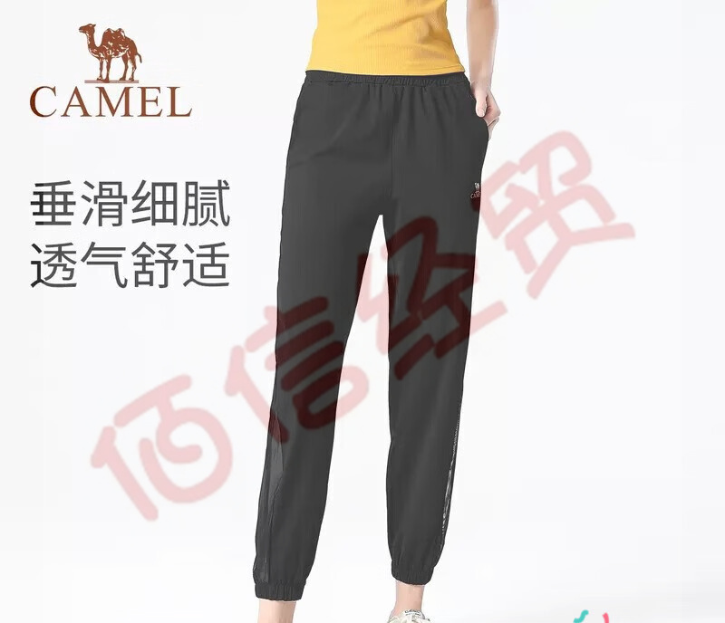 駱駝(CAMEL)運動褲女寬松束腳夏季薄款跑步褲子高腰瑜伽褲長褲透氣健身褲 Y23BAFU376,幻影黑 M 自營