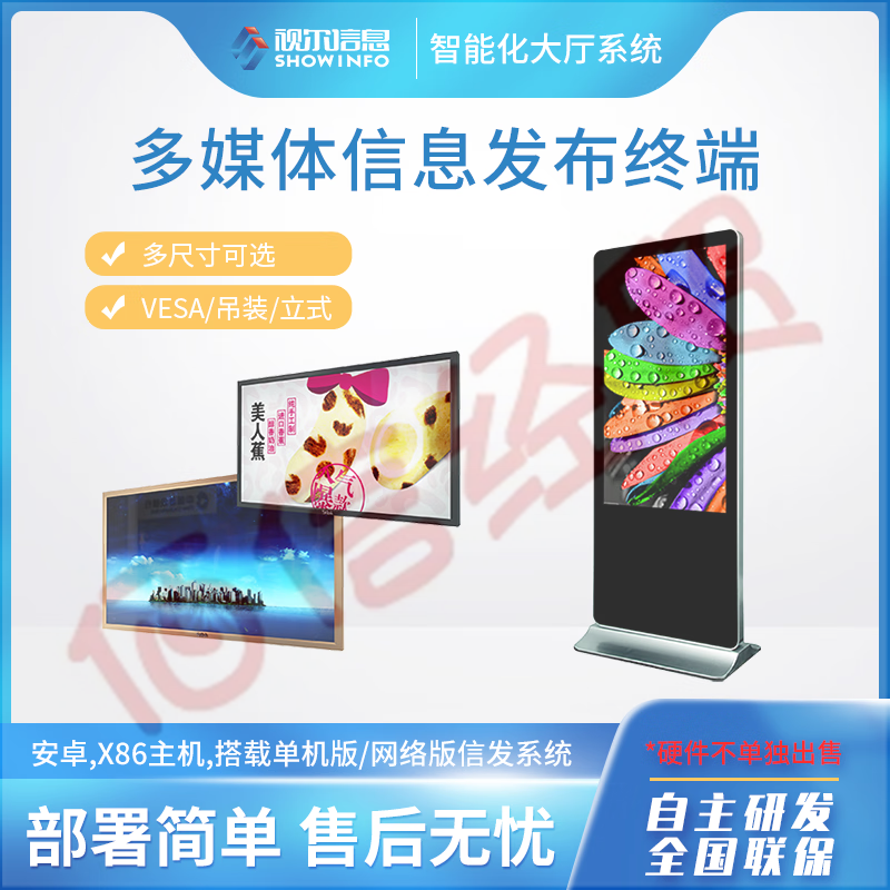 視爾Android / Windows信息發(fā)布系統(tǒng)集中管理遠(yuǎn)程控制廣告展示U盤播放橫豎屏分屏循環(huán)播放 43英寸壁掛式終端顯示屏 法院版本 自營