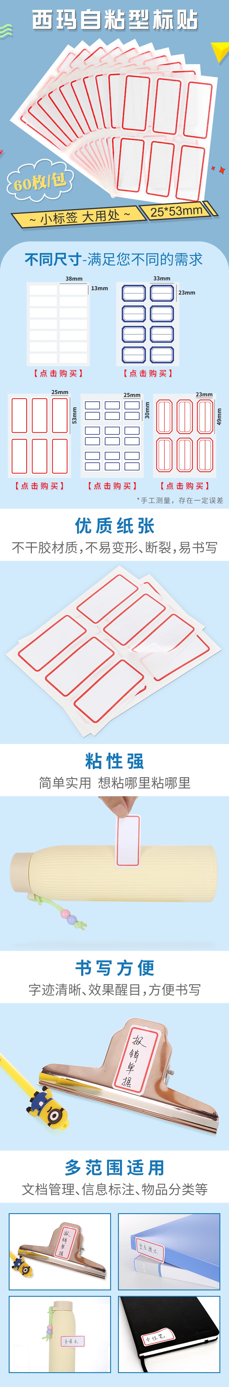 西瑪(SIMAA)25*53mm標(biāo)簽貼紙口取紙 不干膠自粘性標(biāo)貼10張/包 8453(10個起售) 自營