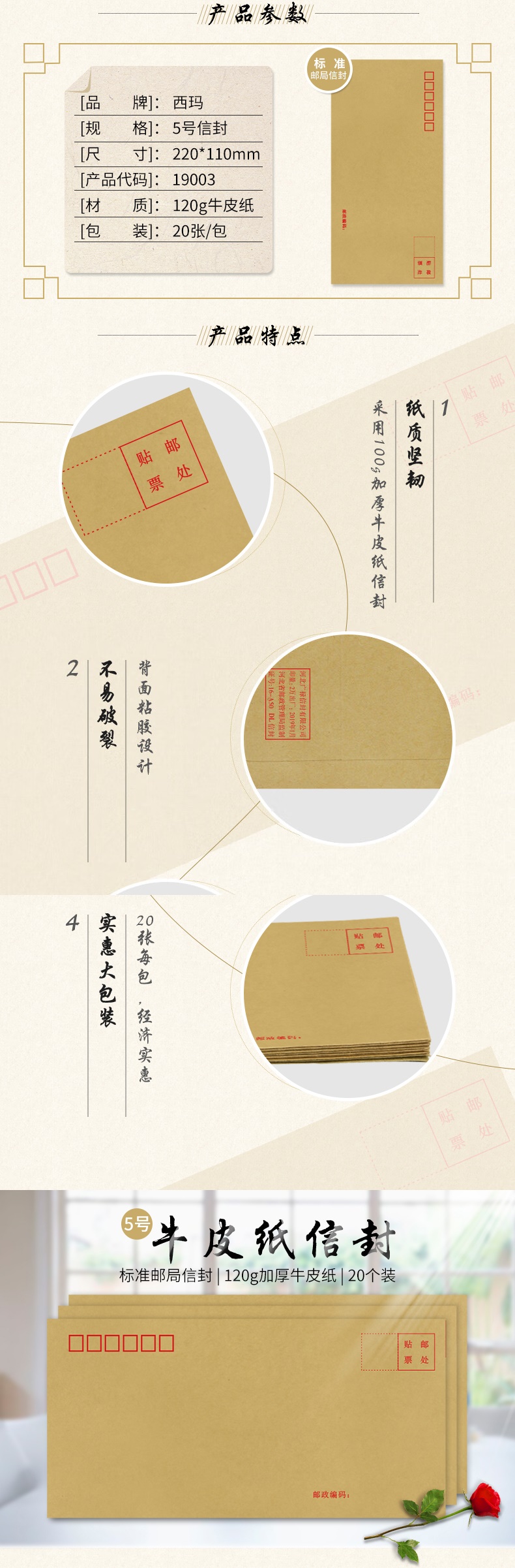 西瑪(SIMAA)20張5號牛皮紙信封 120g木漿郵局標準信封220*110mm19003(10個起售) 自營