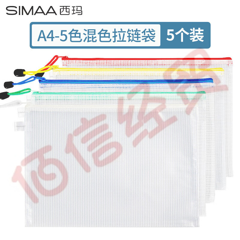 西瑪(SIMAA)5只防水A4網(wǎng)格拉鏈袋 試卷收納袋 文件袋資料袋科目袋 辦公學習用品 6855 自營