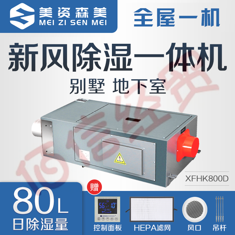 美資森美(MEIZISENMEI)新風(fēng)除濕凈化一體機(jī)吊裝式中央管道除濕機(jī)商用別墅地下室換氣隱藏安裝吊頂全屋一機(jī)單向流 XFHK800D 自營
