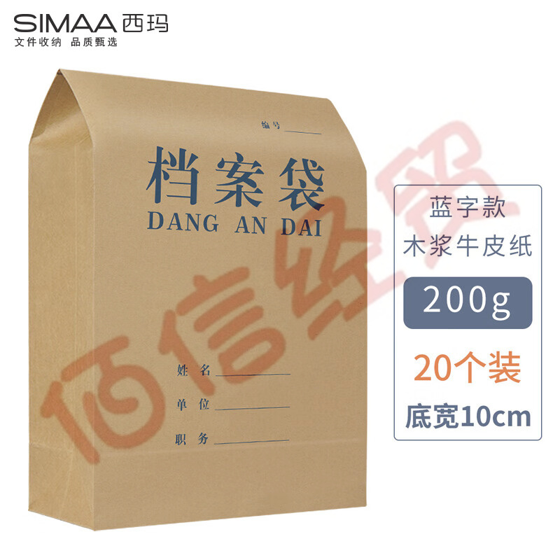 西瑪6845木漿牛皮紙檔案袋藍(lán)字10cm-20 木槳200g 240*340*100mm 20個(gè)/包 25包/箱(紅、藍(lán)兩色下單跟客服聯(lián)系)(整箱售) 自營(yíng)