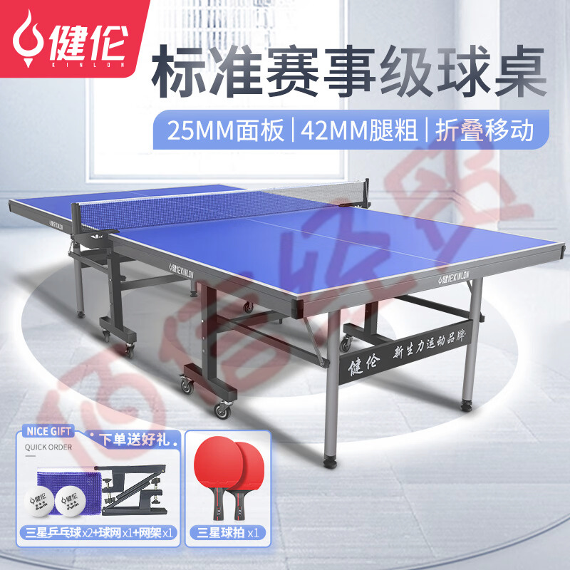 健倫(JEEANLEAN) 乒乓球桌 家用室內(nèi)標(biāo)準(zhǔn)可折疊移動(dòng)專業(yè)比賽乒乓球臺(tái) KL3625賽事款(25MM帶輪) 自營(yíng)