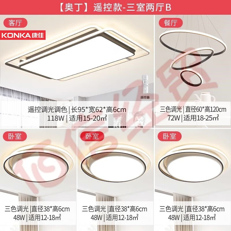 康佳(KONKA)吸頂燈后現(xiàn)代高端薄客廳臥室餐廳燈具燈飾套餐 【奧丁】三室兩廳 自營(yíng)