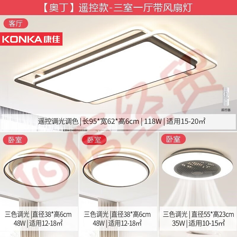 康佳(KONKA)照明后現(xiàn)代客廳燈臥室燈北歐輕奢LED吸頂燈現(xiàn)代簡(jiǎn)約燈具套餐 【奧丁】三室一廳 自營(yíng)
