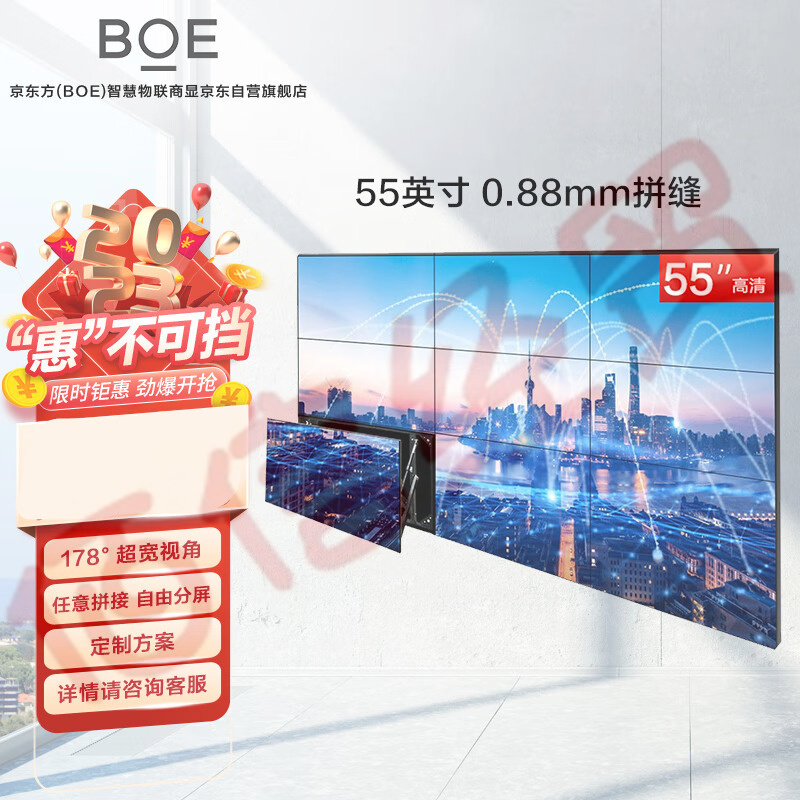 京東方(BOE)拼接屏電視墻無縫0.88mm低亮拼縫超窄邊智能分屏55吋顯示屏企業(yè)會議廣告展示酒吧餐廳大屏幕自營 自營