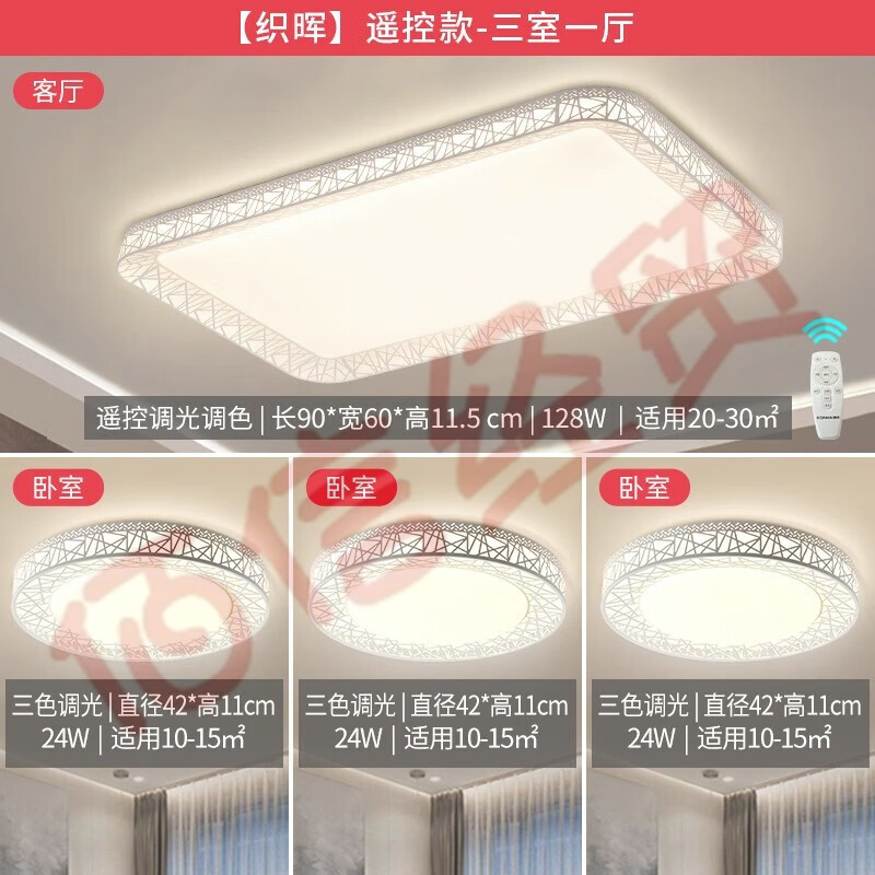 康佳(KONKA)客廳LED吸頂燈臥室書房燈簡(jiǎn)約中式風(fēng)鳥巢燈具全屋套餐 織暉 【織暉】三室一廳 自營(yíng)
