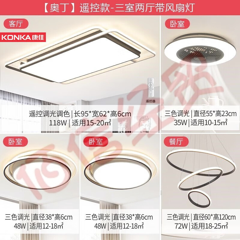 康佳(KONKA)吸頂燈后現(xiàn)代高端超薄客廳臥室餐廳燈具燈飾全屋套餐 奧丁 【奧丁】三室二廳(帶鳳扇) 自營