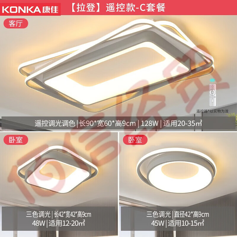 康佳(KONKA)照明LED客廳大燈吸頂燈餐廳臥室全屋燈具套餐 【拉登】2室1廳 自營(yíng)