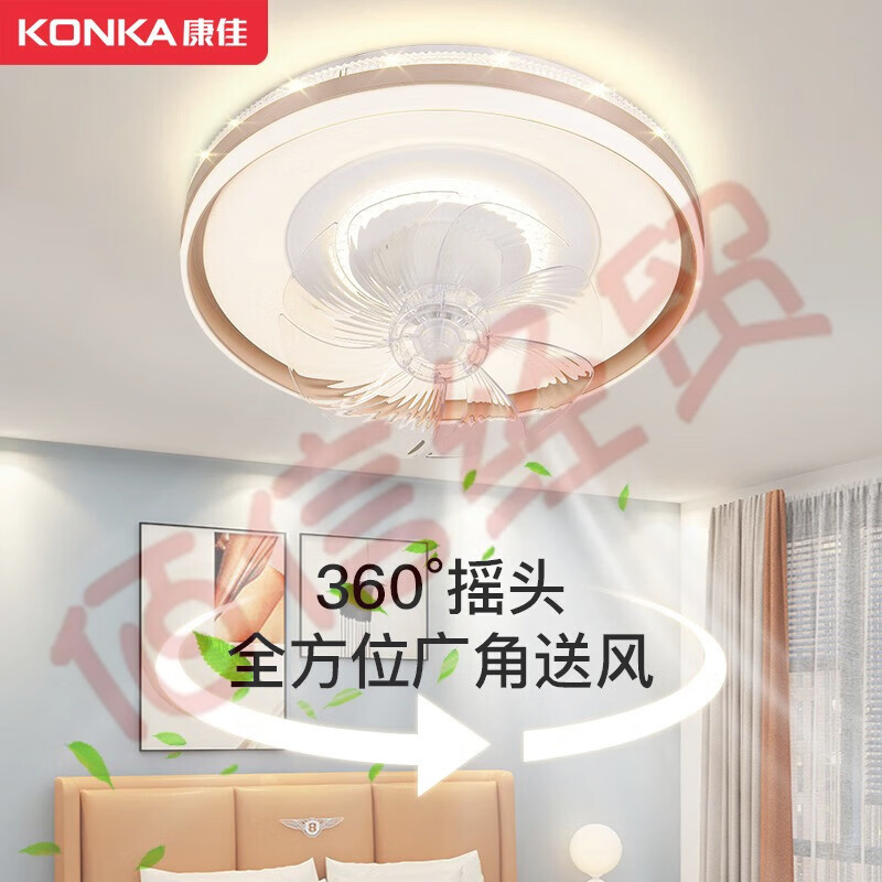 康佳(KONKA)臥室風(fēng)扇燈360度搖頭變頻餐廳新款吸頂簡約客廳兒童吊扇家用 變頻搖頭/圣安迪咖色、直布羅陀灰色、太陽神金色 自營
