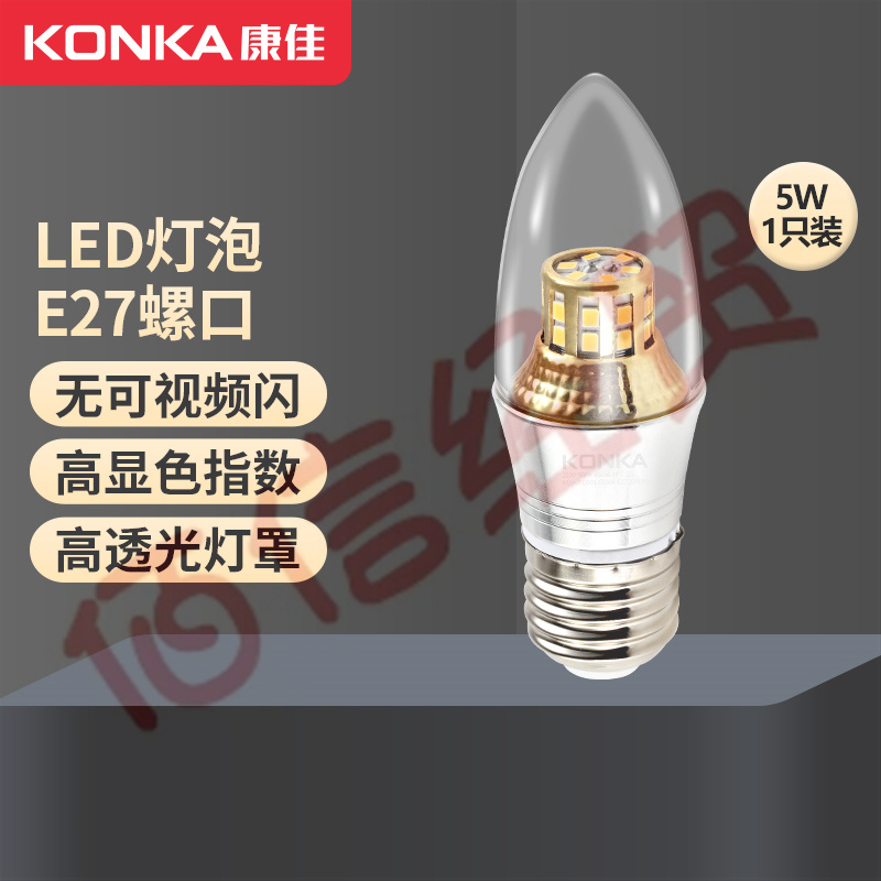 康佳(KONKA)LED燈泡尖泡雙色可選客廳燈壁燈水晶燈吊燈家用替換燈 E27-KQP6042-5DWG/5W3000K 自營