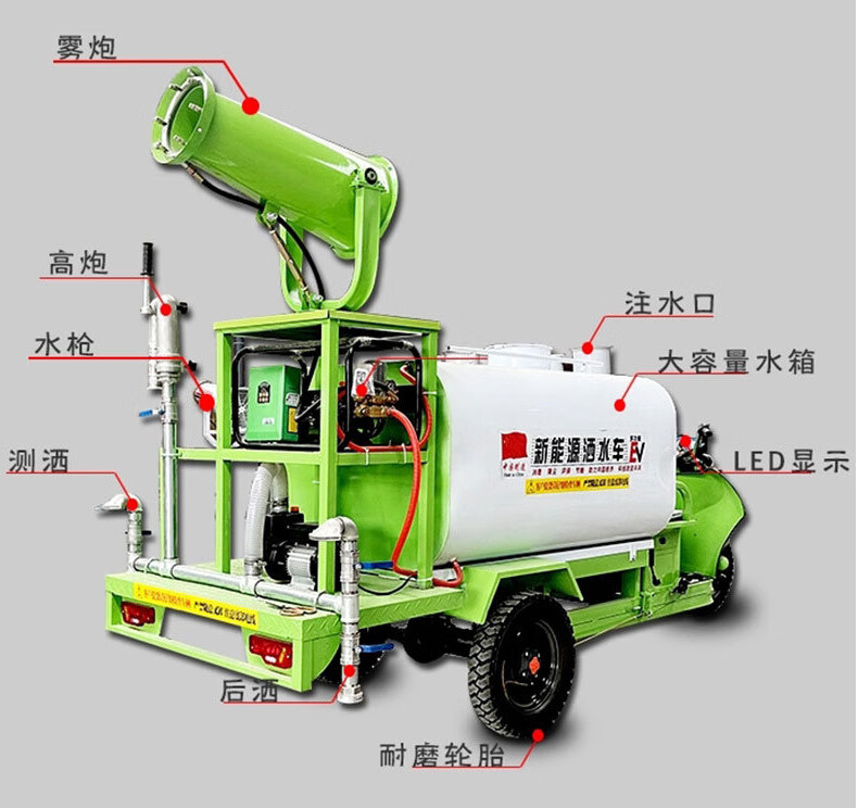 利晨 新能源電動(dòng)三輪灑水車工地噴灑車綠化灑水車除塵霧炮垃圾車環(huán)衛(wèi)車運(yùn)水車多功能小型噴霧車1.5方純電版 自營