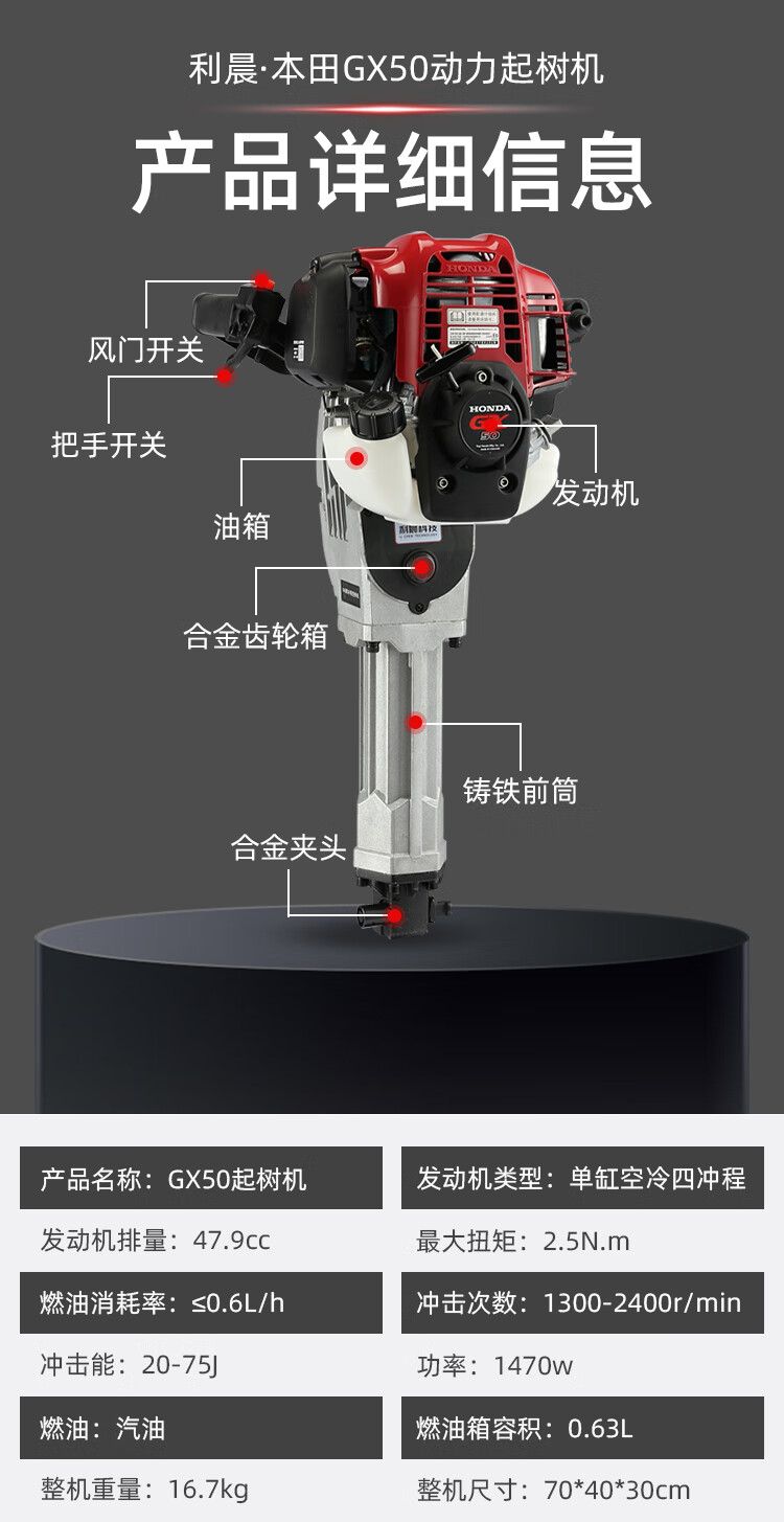 利晨汽油光伏打樁機便攜式植樁機建筑本田GQ35小型打墩機防汛木樁鋼管 68型GQ35打樁機