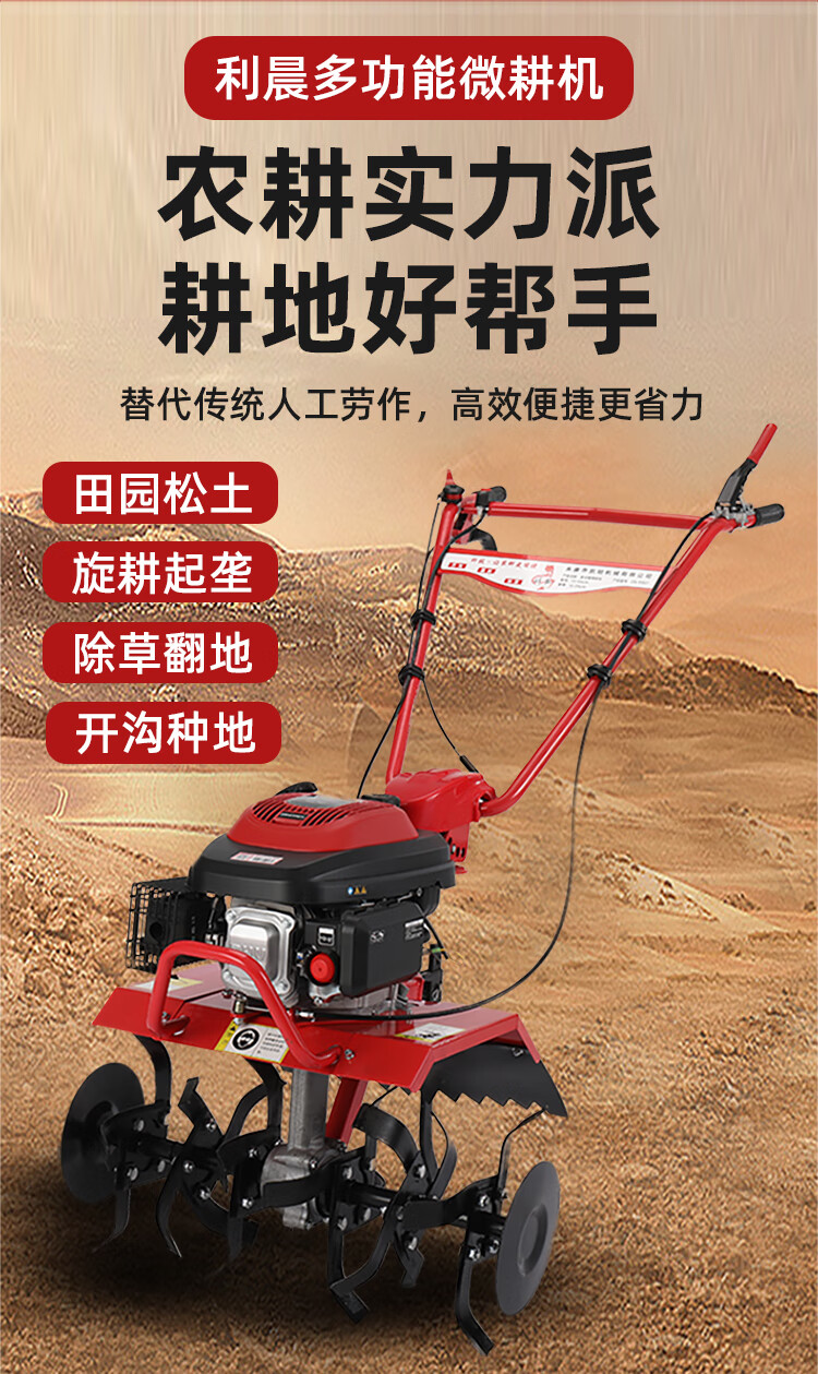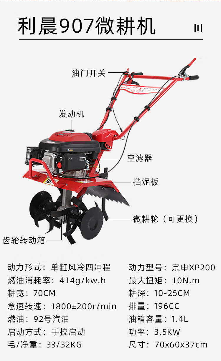 利晨宗申XP200汽油微耕機(jī)農(nóng)用犁地翻土松土開溝機(jī)耕田翻地耕地旋耕機(jī)(主機(jī)+旋耕刀+輪胎+開溝器+鐵輪) 自營(yíng)