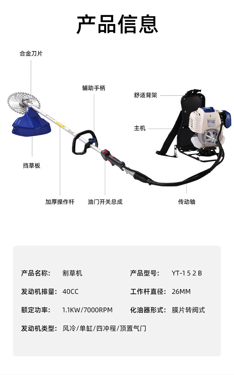 利晨四沖程152背負(fù)式汽油割草機(jī)打草機(jī)大功率汽油農(nóng)用開(kāi)荒除草收割機(jī)(152-B背負(fù)式割草機(jī)) 自營(yíng)