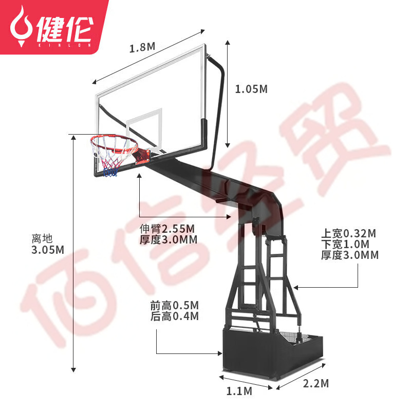 健倫成人平箱籃球架加大加厚箱體戶外標(biāo)準(zhǔn)籃球框移動三色1支免費安裝