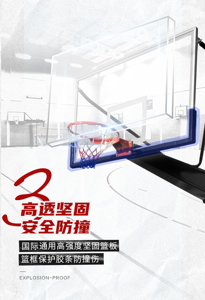 健倫(JEEANLEAN)JLGAA61 籃球架 成人訓(xùn)練比賽標(biāo)準(zhǔn)電動液壓籃球架(含防撞包)