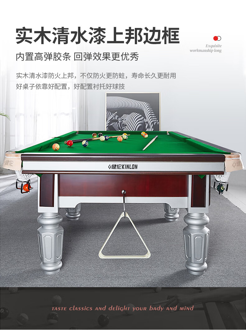 健倫臺球桌中式黑8球房家用球桌成人標準美式黑8 JL-S11 自營