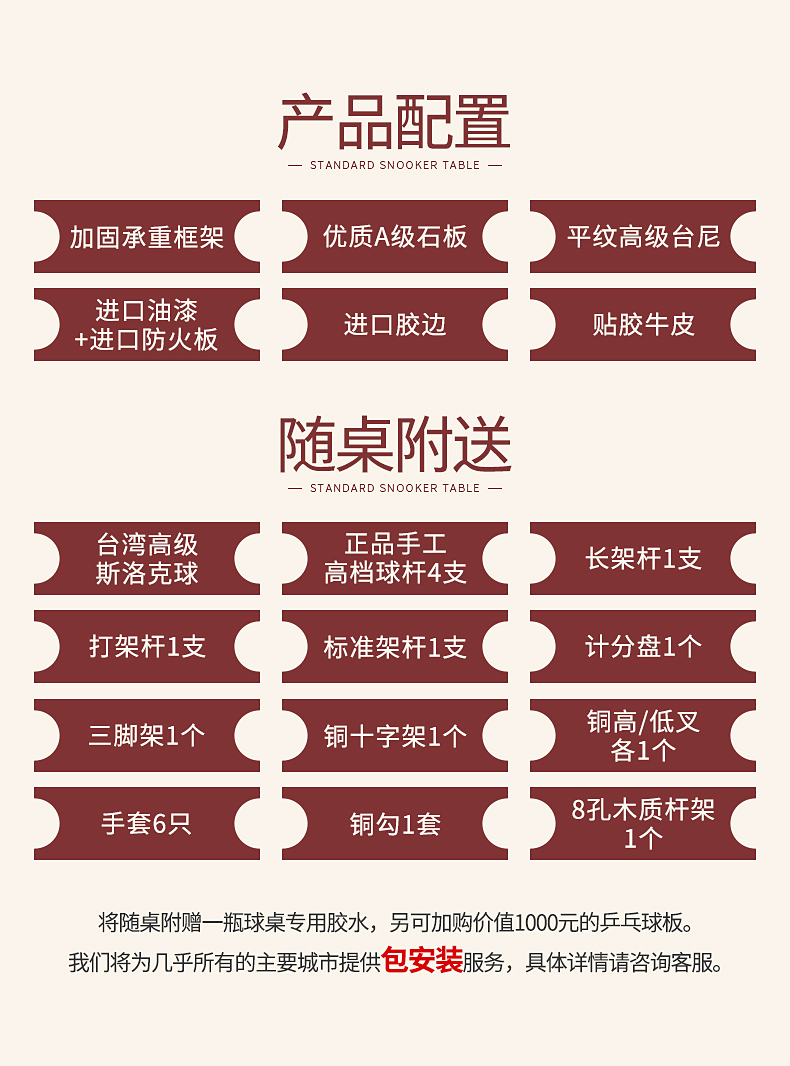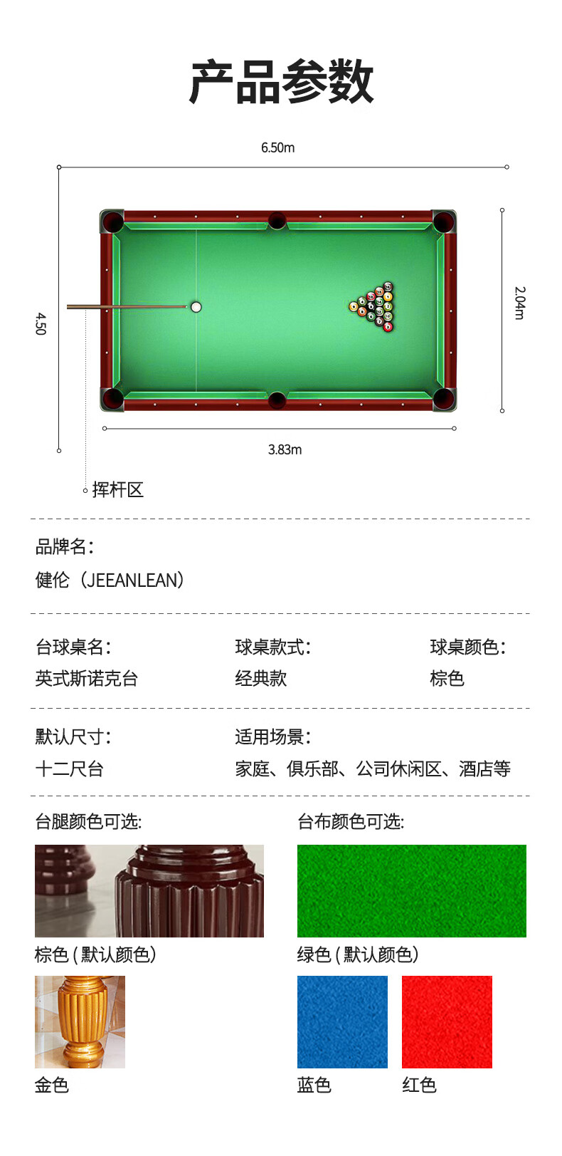 健倫斯諾克臺球桌英式桌球臺家用球房俱樂部 JL-S14 自營