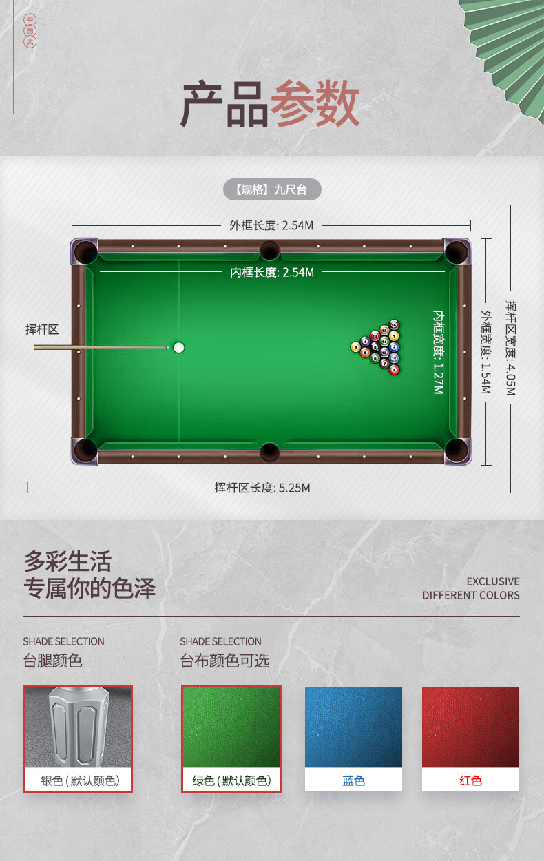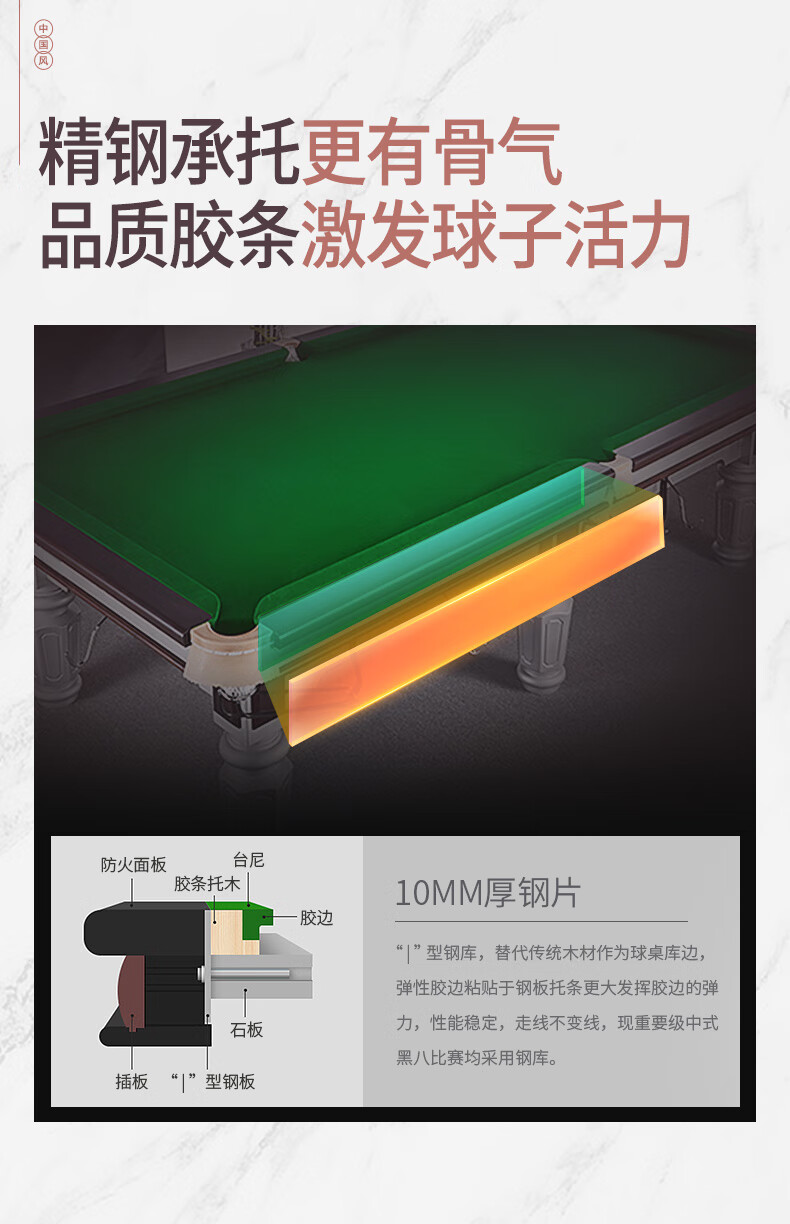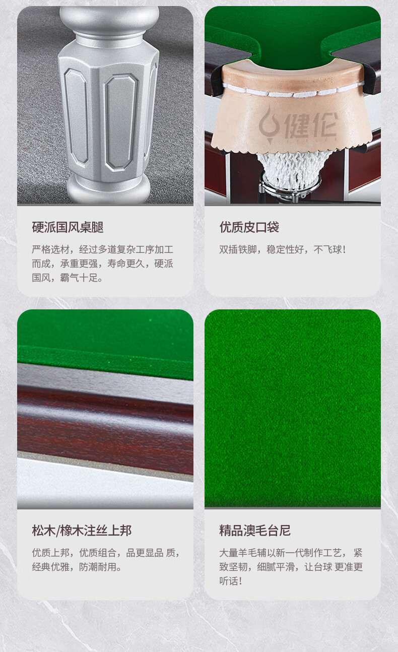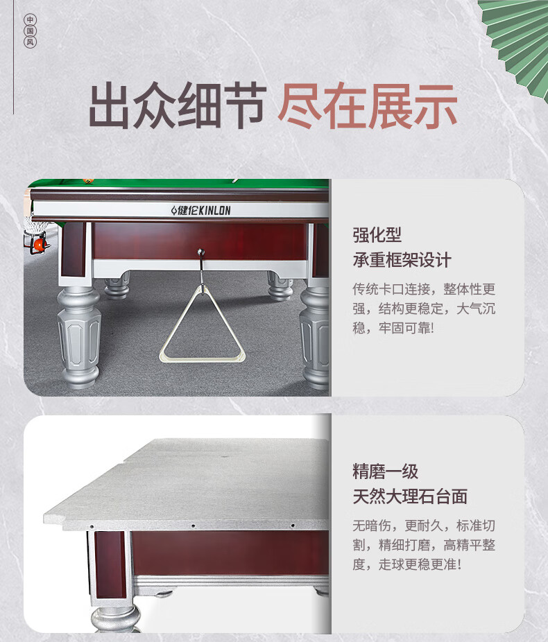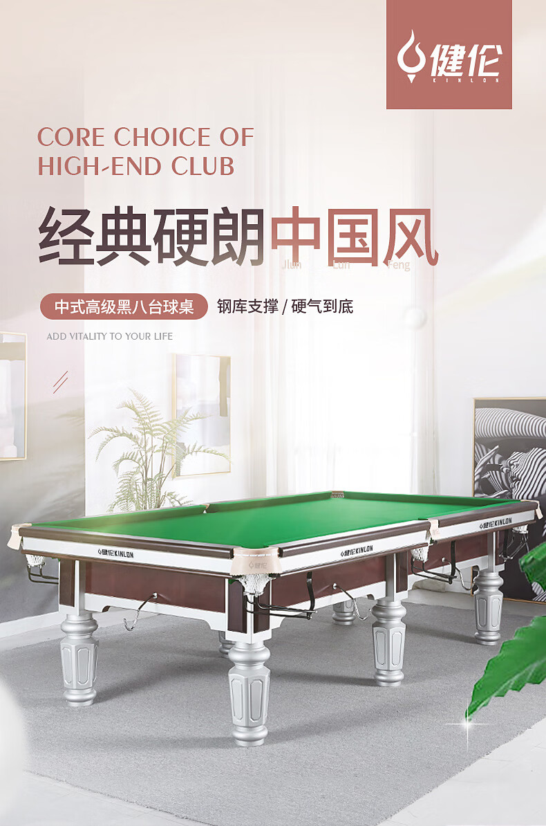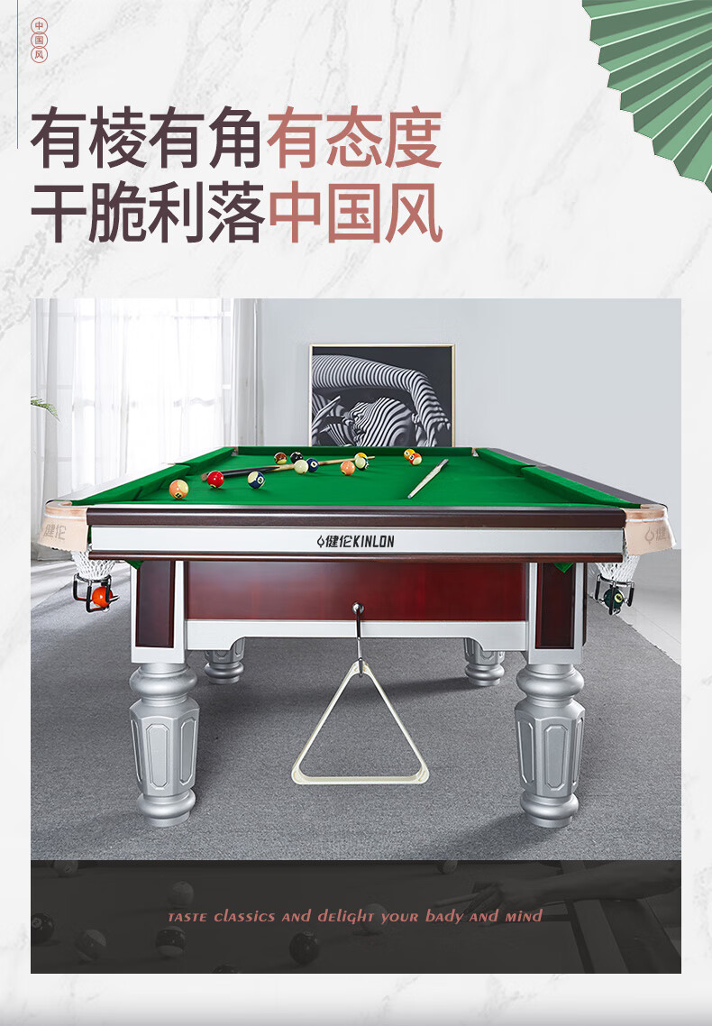 健倫(JEEANLEAN)臺(tái)球桌鋼庫(kù)銀腿標(biāo)準(zhǔn)九尺美式黑八JL-ZQT-A5S 自營(yíng)