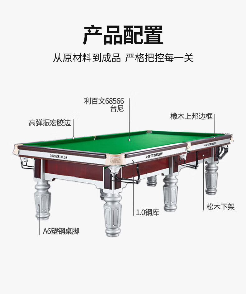 健倫臺球桌 鋼庫銀腿 標(biāo)準(zhǔn)九尺家用高端美式黑八 采購款JLAB128 自營