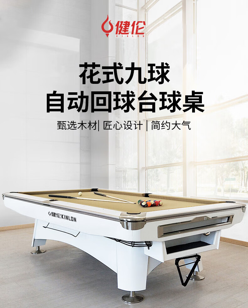 健倫(JEEANLEAN)JLAB135 美式九球臺球桌標(biāo)準(zhǔn)成人桌球家用比賽標(biāo)準(zhǔn)臺球桌 自營