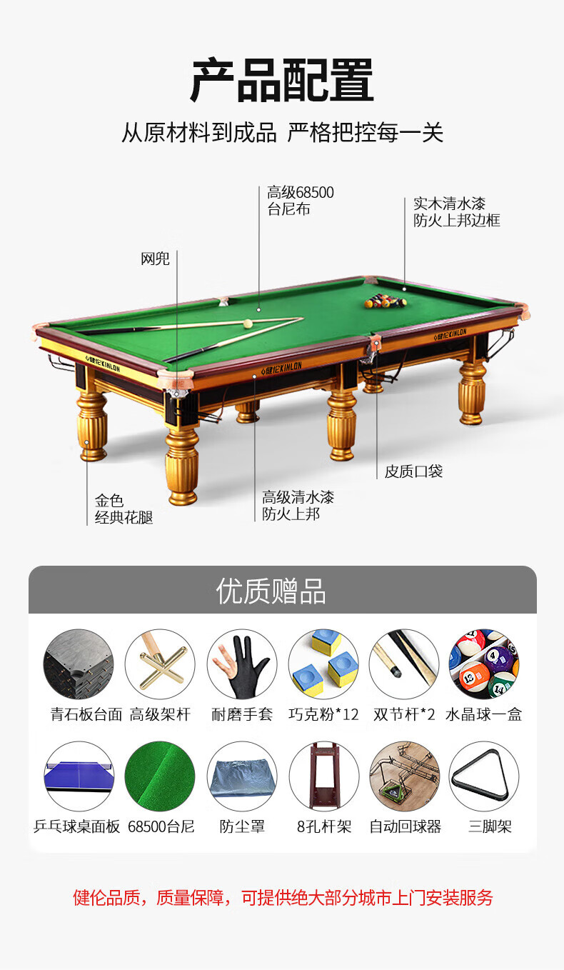 健倫臺(tái)球桌鉆石級(jí)頂配 九尺家用高端美式黑八 全包采購(gòu)款JLAB129 自營(yíng)