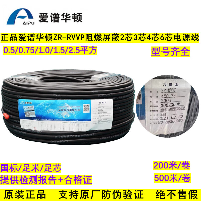 愛譜華頓RVVP2芯3芯4芯6芯8芯0.5/0.75/1.0/1.5/2.5/4/6電源線,200米/500米一盤,原裝,檢測報告合格證齊全,國標無氧銅線徑 大品牌質量,!值得信賴!