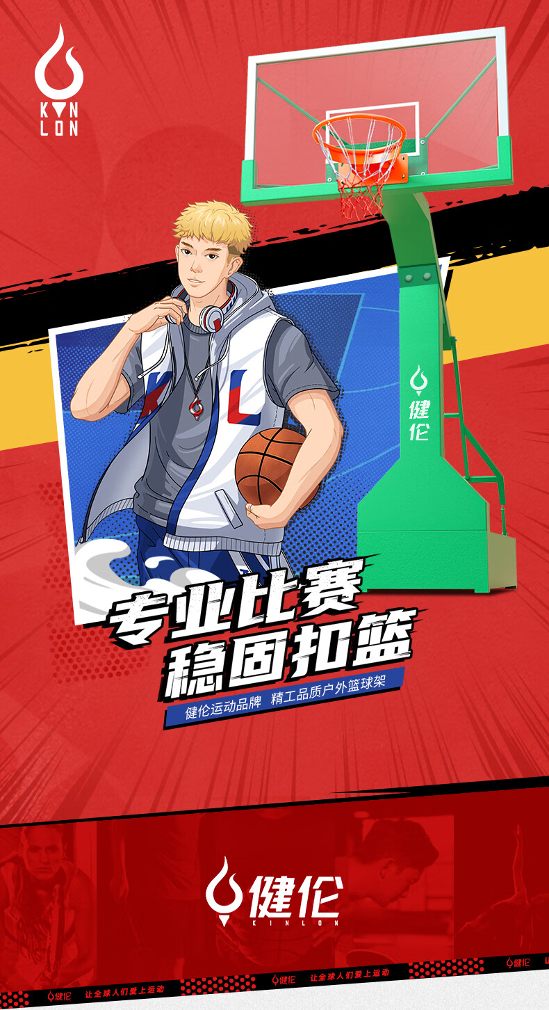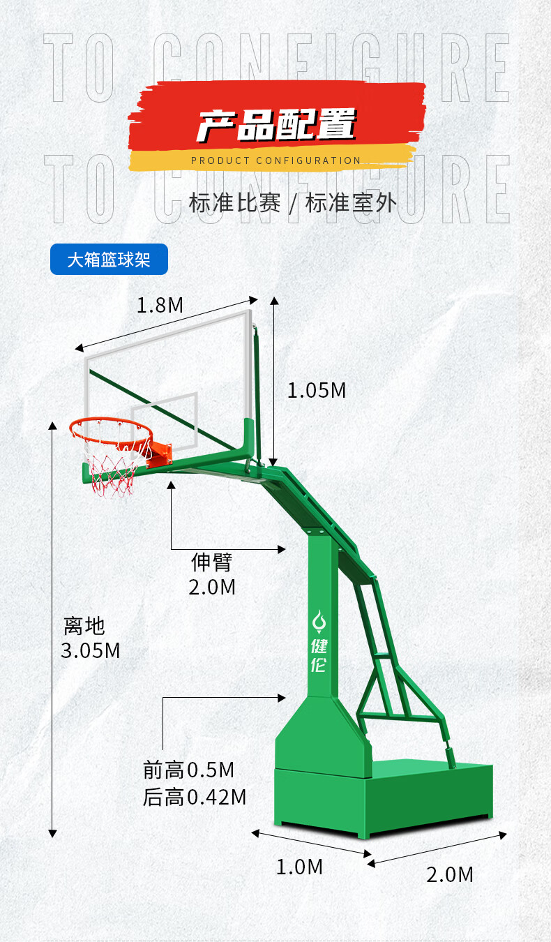健倫(JEEANLEAN)JLAA161成人標(biāo)準(zhǔn)比賽訓(xùn)練平箱籃球架綠色/單只 自營(yíng)