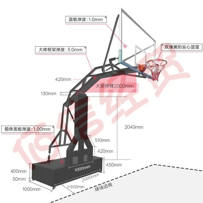健倫健倫比賽訓(xùn)練專用加厚加粗立柱升級(jí)款平箱籃球架/只